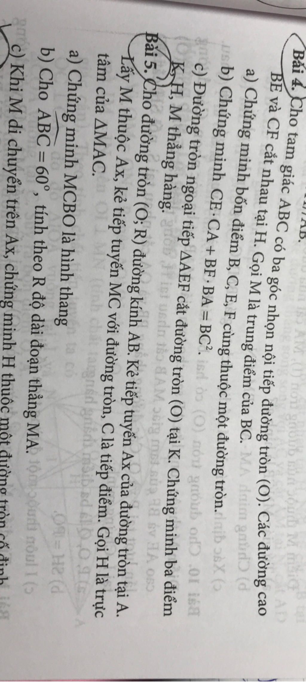 Bài 4. Cho tam giác ABC có ba góc nhọn nội tiếp đường tròn (O). Các đường cao
