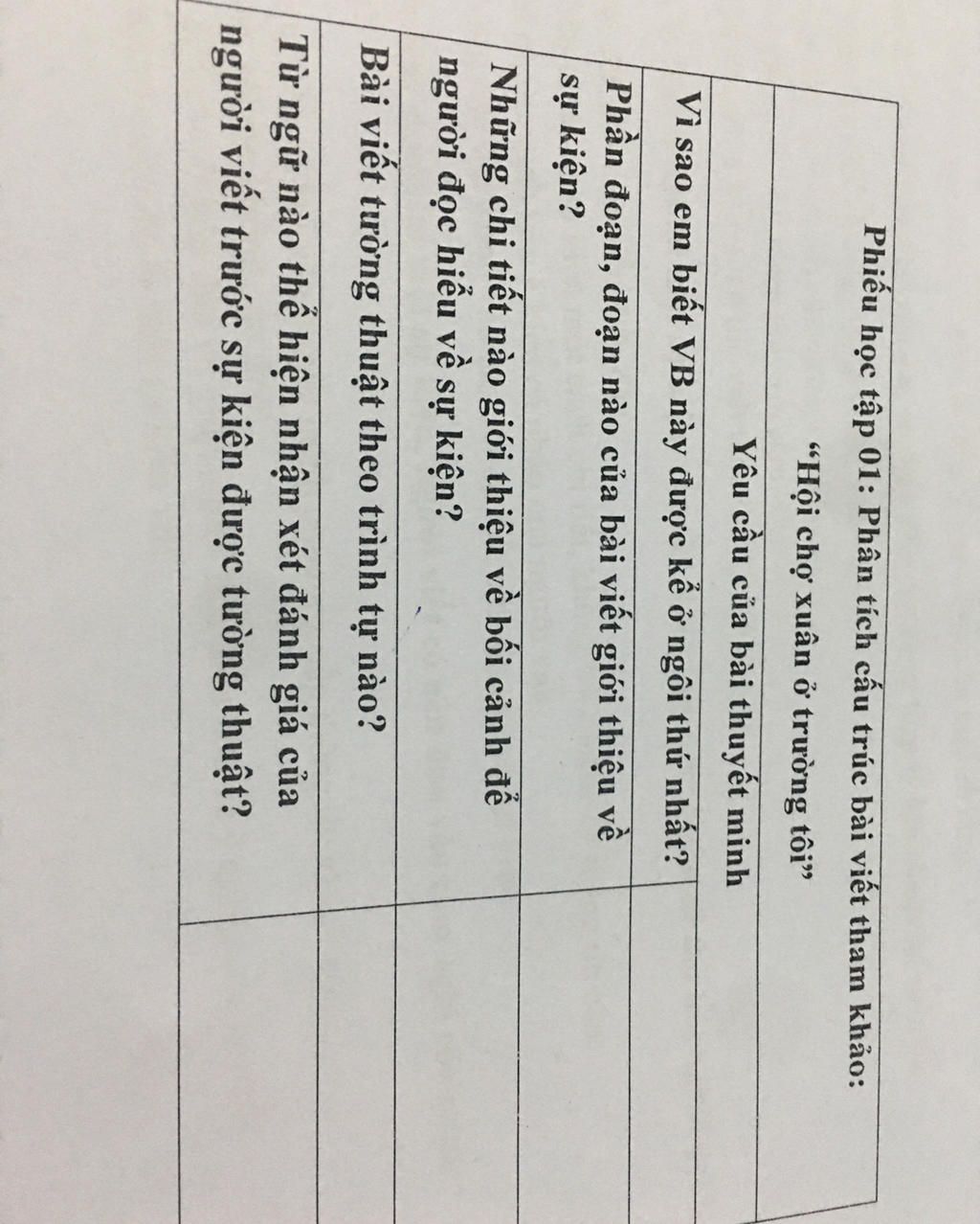 Phiếu học tập 01: Phân tích cấu trúc bài viết tham khảo: