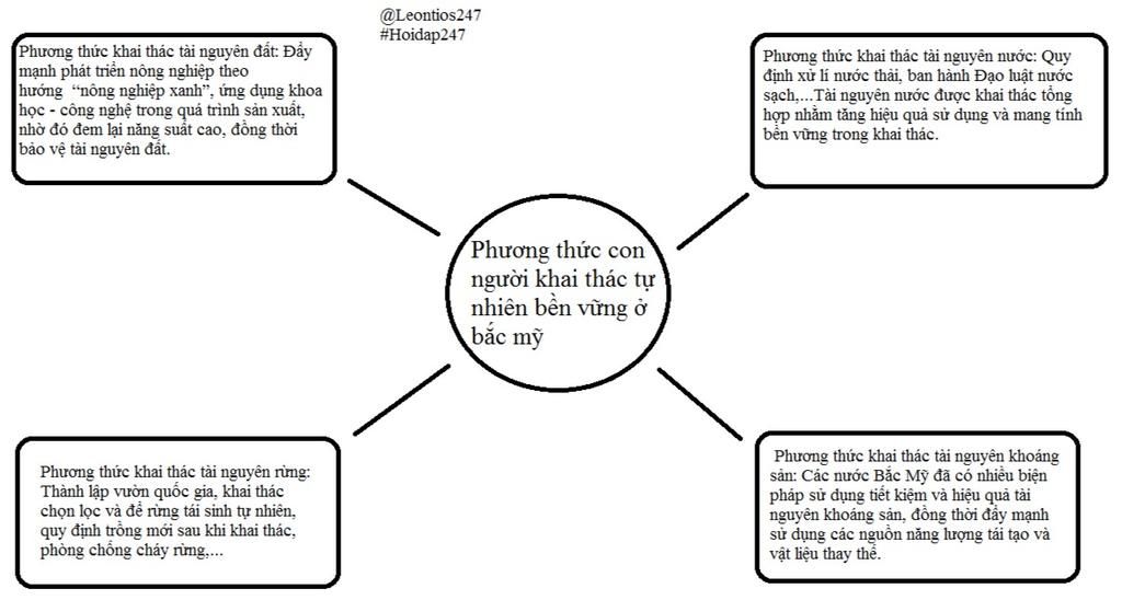 *Sơ đồ tư duy về phương thức con người khai thác tự nhiên bền vững ở bắc mỹ.