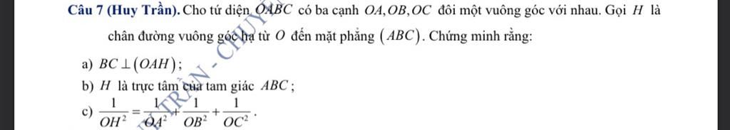 Câu 7 (Huy Trần). Cho tứ diện 04BC có ba cạnh OA,OB,OC đôi một vuông góc với nhau. Gọi H là