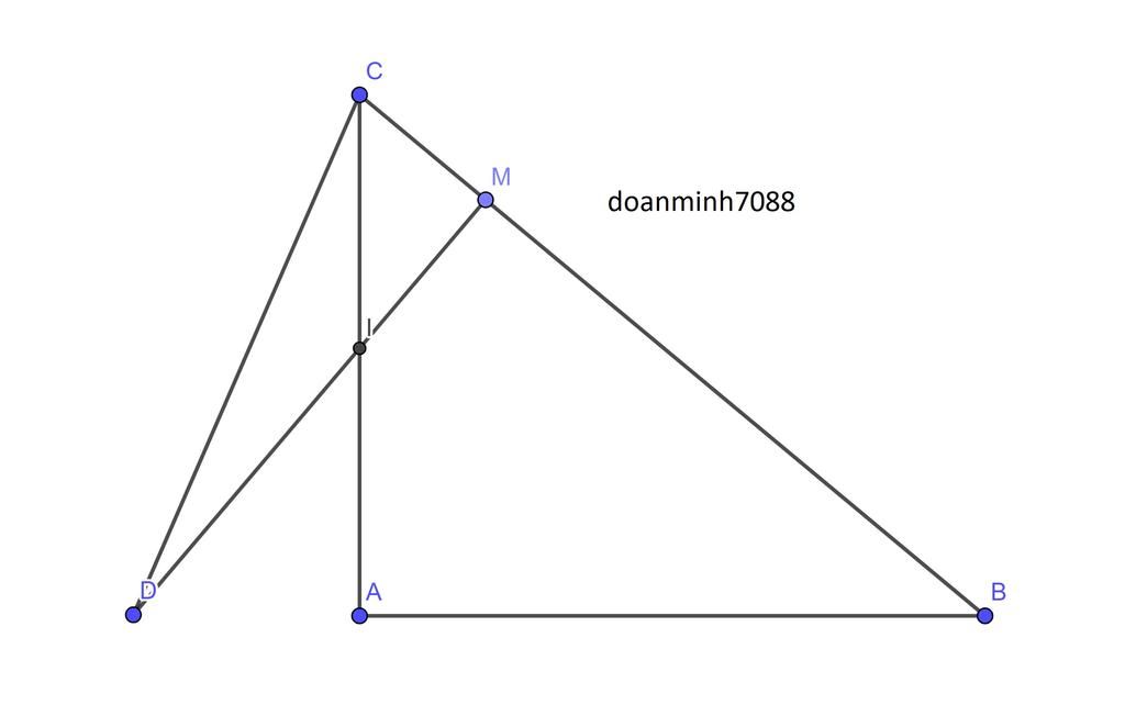 Cho tam giác ABC vuông tại A có AB > AC. M là điểm tùy ý trên BC. Qua M kẻ tia Mx vuông góc BC và cắt AB tại I, cắt tia CA tại D.