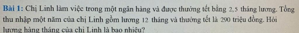 Lương cả năm của chị Linh là: `12x` (triệu đồng)