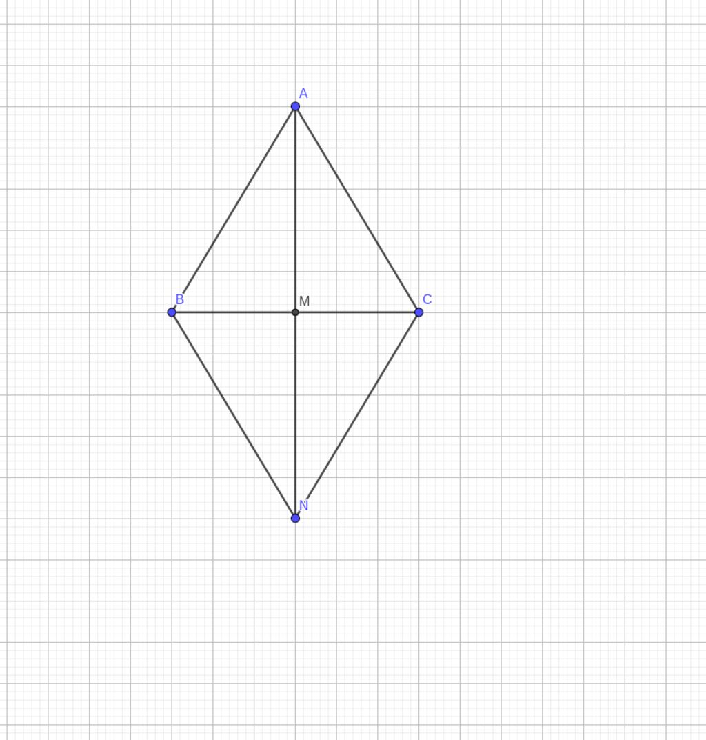 Cho tam giác ABC AB = AC phân giác AN a) chứng minh AM vuông góc với BC và là trung điểm của BC trên tia AM lấy N sao cho AM =MN b) c minh tam giác ABM=TAM GÁC NCM C) cm AB song song NC D) cm tam giác AMC=tam gác NMC e) CB LÀ tia phân giác góc ACN