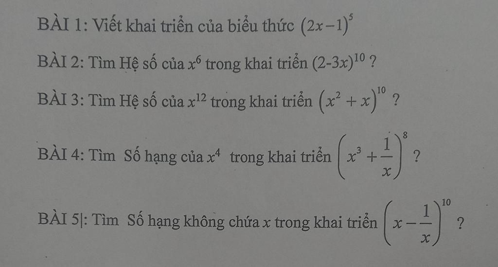 BÀI 1: Viết khai triển của biểu thức (2x−1)