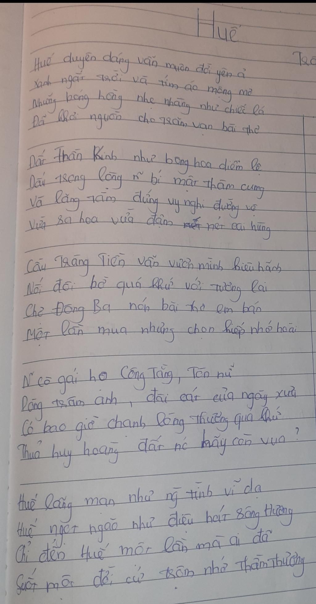 Viết đoạn văn 200 chữ phân tích vẻ đẹp con người xứ Huế qua cảm nhận của tác giả (mình đang cần ạ mình cảm ơn)