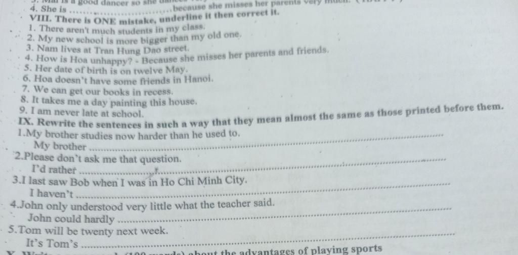 Dịch: Tại sao Hoa ko vui? - Vì cô ấy nhớ gia đình và bạn bè