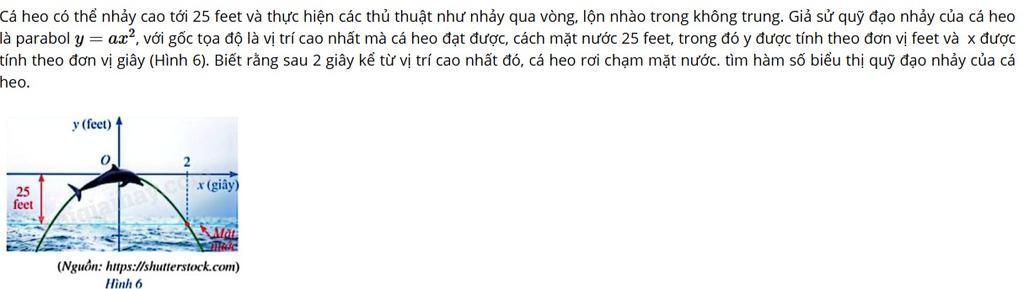 Quỹ đạo nhảy của cá heo là parabol `y=ax^2 (a!=0)` có gốc toạ độ là vị trí ca heo nhay cao nhất