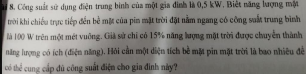 Mỗi mét vuông tấm pin mặt trời nhận được số năng lượng có ích :
