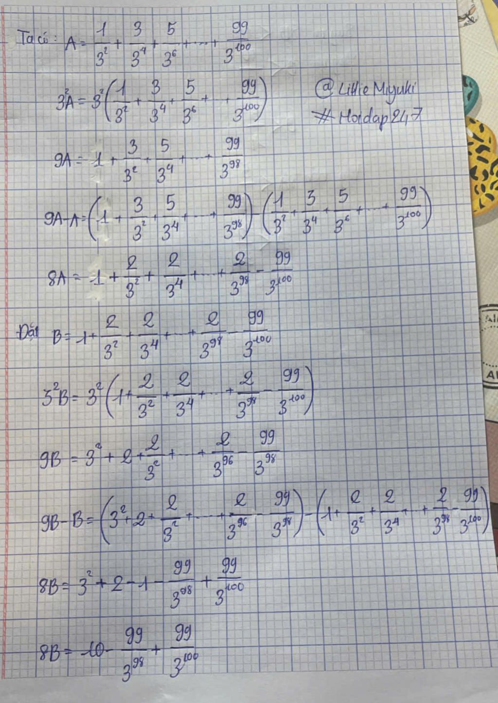 Đặt `A = \frac{1}{3^2} + \frac{3}{3^4} + \frac{5}{3^6} + \cdots + \frac{99}{3^{100}}`