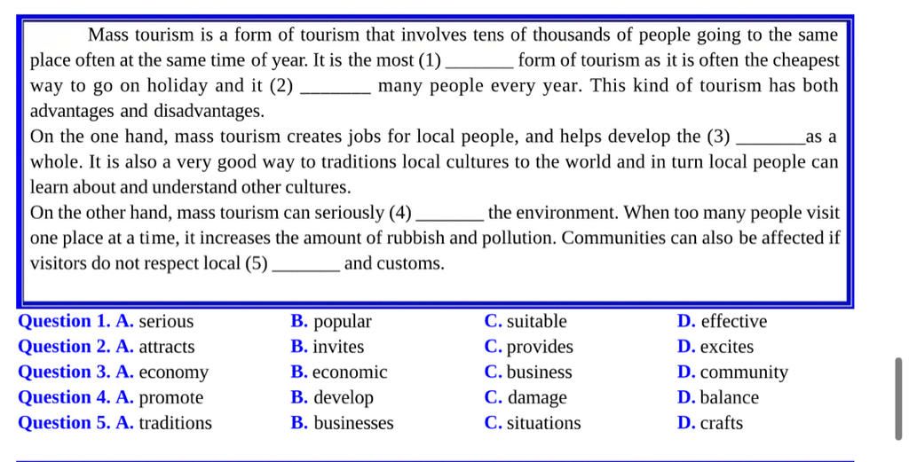 `->` Với khu du lịch, ta dùng từ thu hút khách chứ không dùng các từ mời (invite), cung cấp (provide) khách,.,.