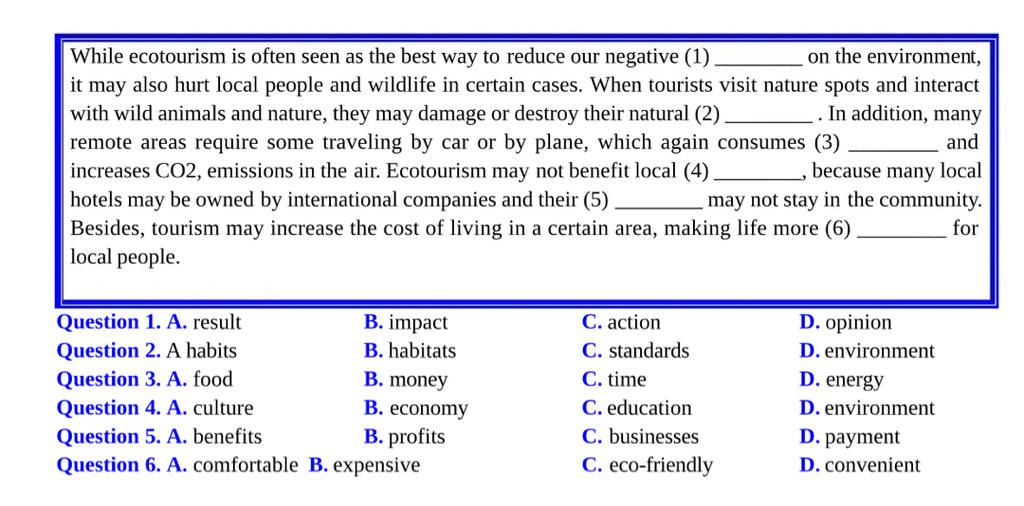 `-` "Ecotourism" : du lịch sinh thái - thường liên quan đến "economy" : kinh tế
