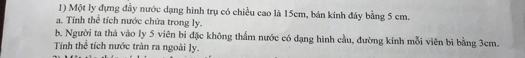 Thể tích nước tràn ra ngoài ly là `22,5picm^3`