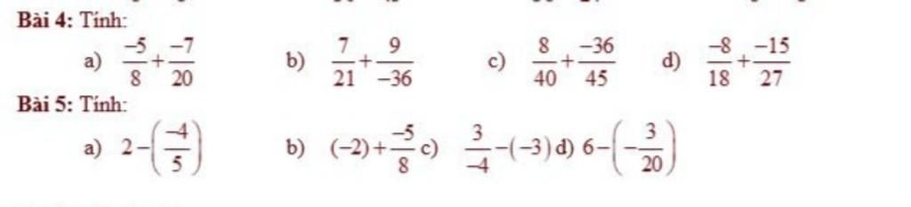 `c,` `8/40` `+` `-36/45` `=` `1/5` `+` `-4/5` `=` `3/5`