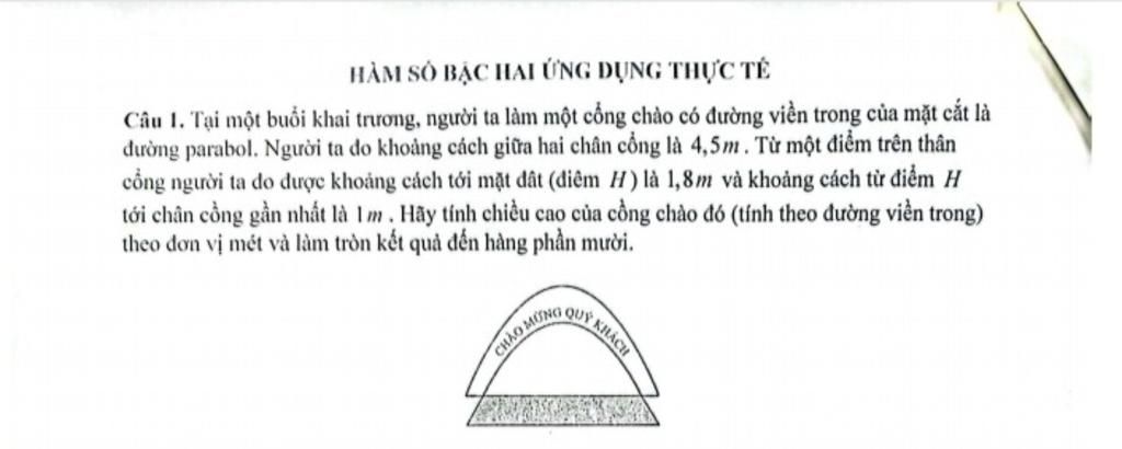 Câu I. Tại một buổi khai trương, người ta làm một cổng chào có đường viền trong của mặt cắt là
