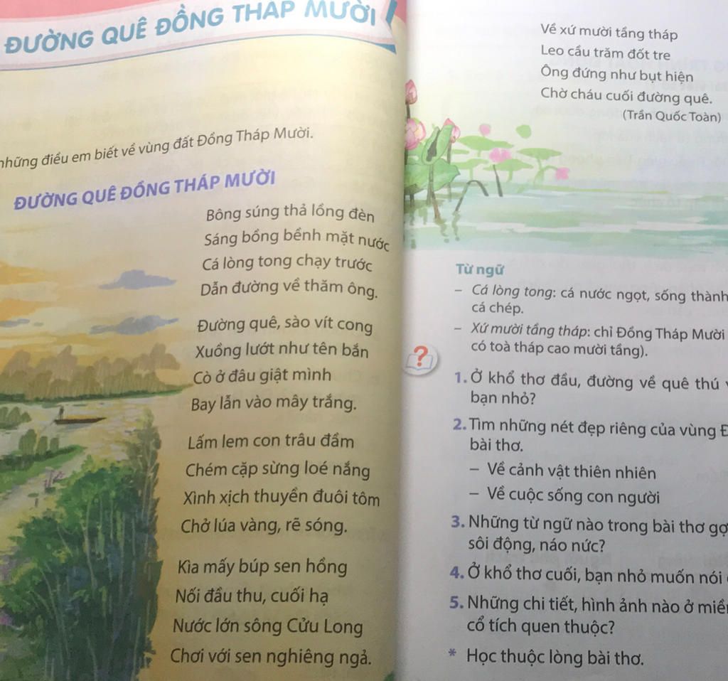 Đề 1. Ghi lại 5 danh từ, 5 động từ và 3 tính từ trong bài thơ “Đường quê Đồng Tháp Mười”