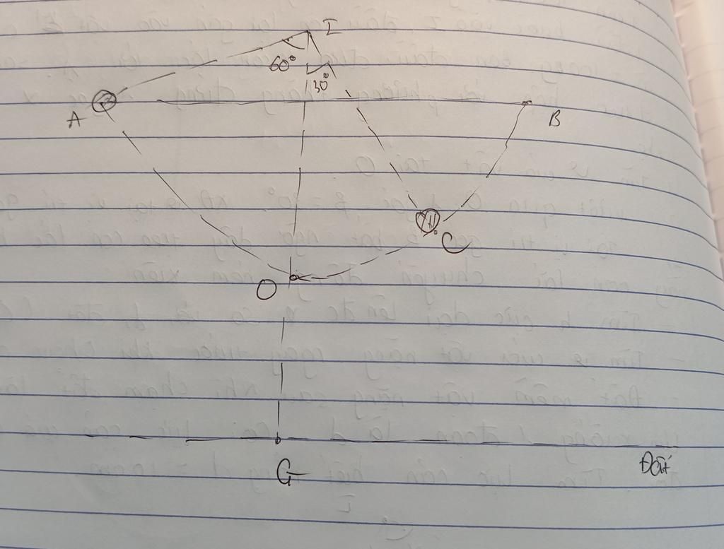 `b,` Con lắc vượt qua `O` một góc `\beta= 30^o`. Xác định `v` tại vị trí `C`