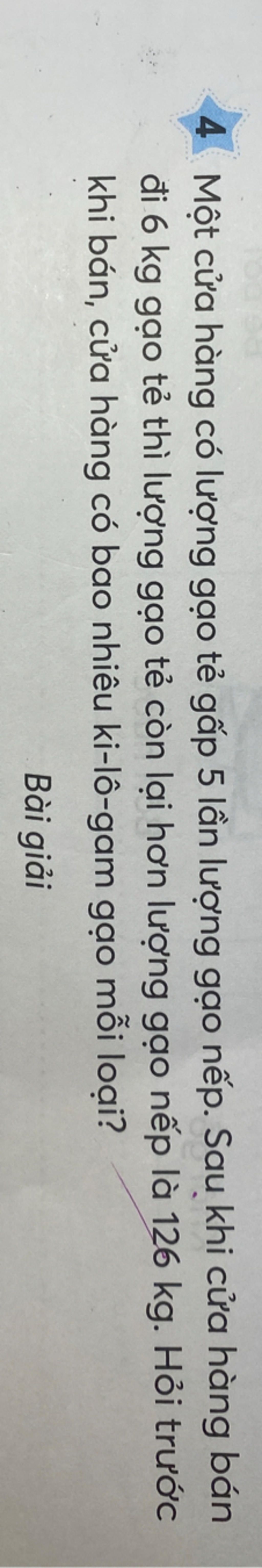 Số gạo tẻ hơn số gạo nếp số ki - lô - gam là `:`
