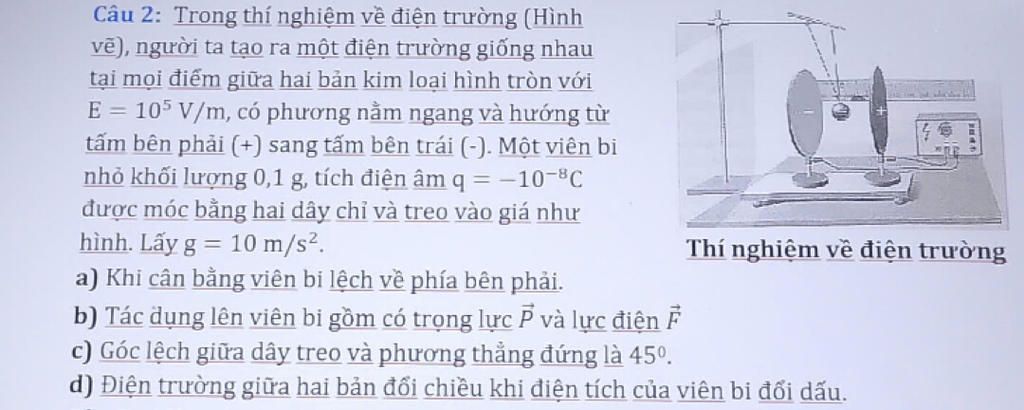 Điện trường giữa hai bản đổi chiều khi ta thay đổi ngược chiều cắm của các bản tụ với nguồn để thay đổi dấu của các bản tụ chứ không liên quan đến điện tích của viên bi.