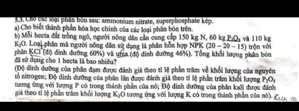 5.3. Cho các loại phân bón sau: ammonium nitrate, superphosphate kép.