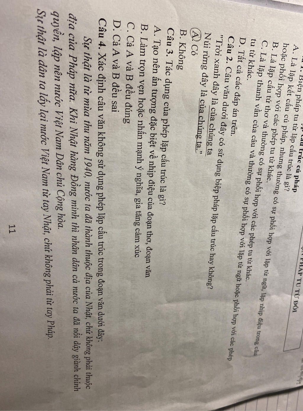 A. Là lặp kết cấu cú pháp, nhưng thường có sự phối hợp với lặp từ ngữ, lặp nhịp điệu trong câu