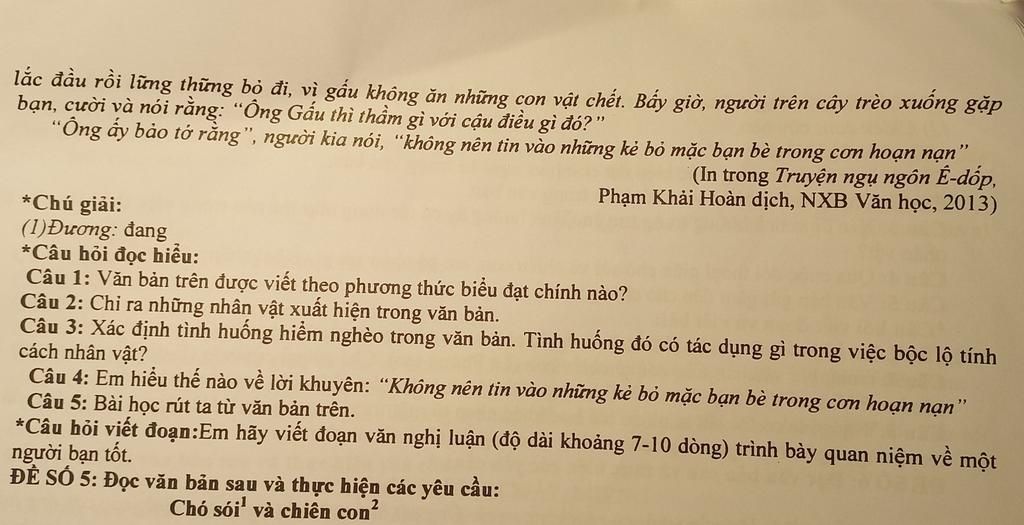 Câu 4: Em hiểu thế nào về lời khuyên: Không nên tin vào những kẻ bỏ mặc bạn bè trong cơn hoạn nạn.