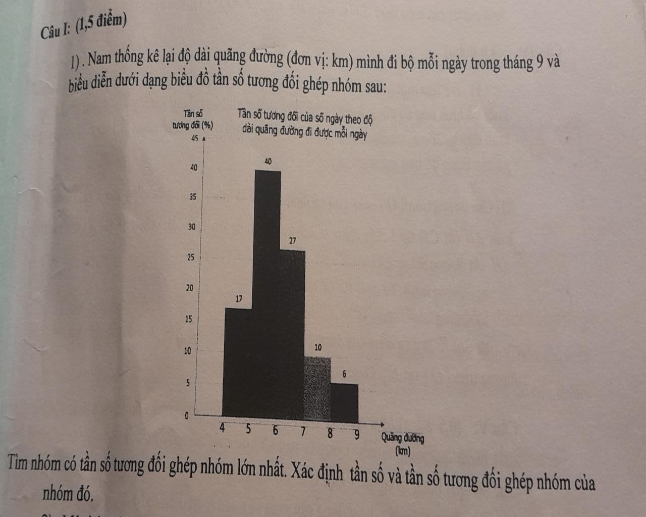 `+)` Nhóm có tần số tương đối ghép nhóm lớn nhất là: `[5;6)` với `40%`