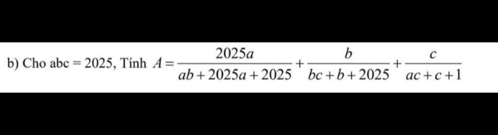 `A = 2025a / (ab + 2025a + 2025) + b / (bc + b + 2025) + c / (ac + c + 1)`