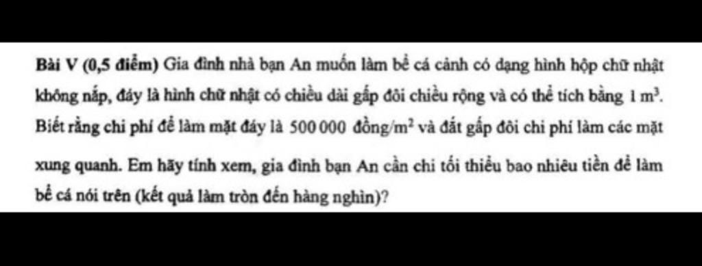 $T=500\cdot 2x\cdot x+2(2x+x)\cdot h\cdot \dfrac{500}2=1000x^2+1500xh$ nghìn đồng