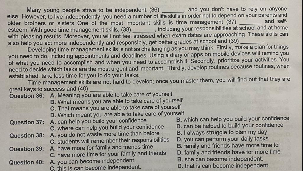 `-` Những kỹ năng này cũng có thể giúp bạn hành động độc lập và có trách nhiệm hơn, đạt điểm cao hơn ở trường và __________