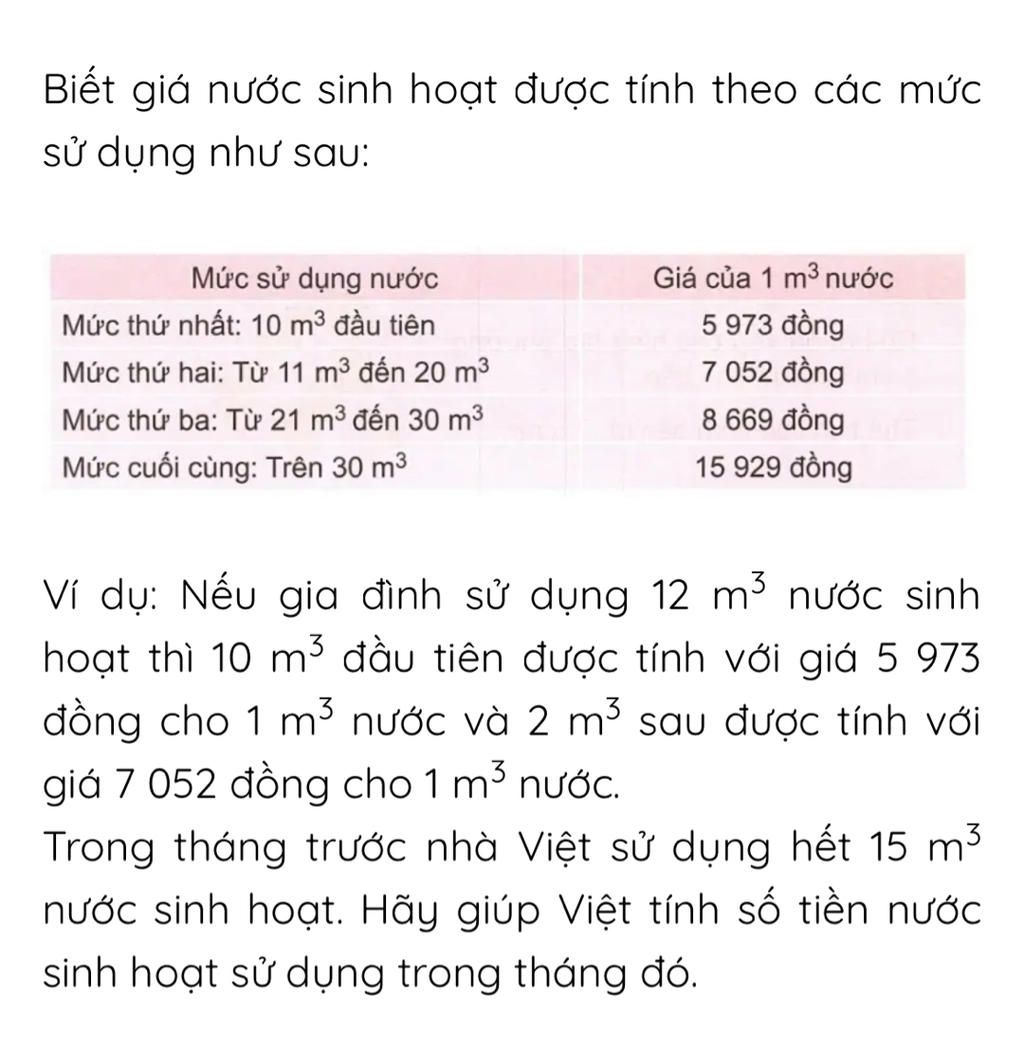 Số tiền nước sinh hoạt nhà Việt sử dụng trong tháng đó là: