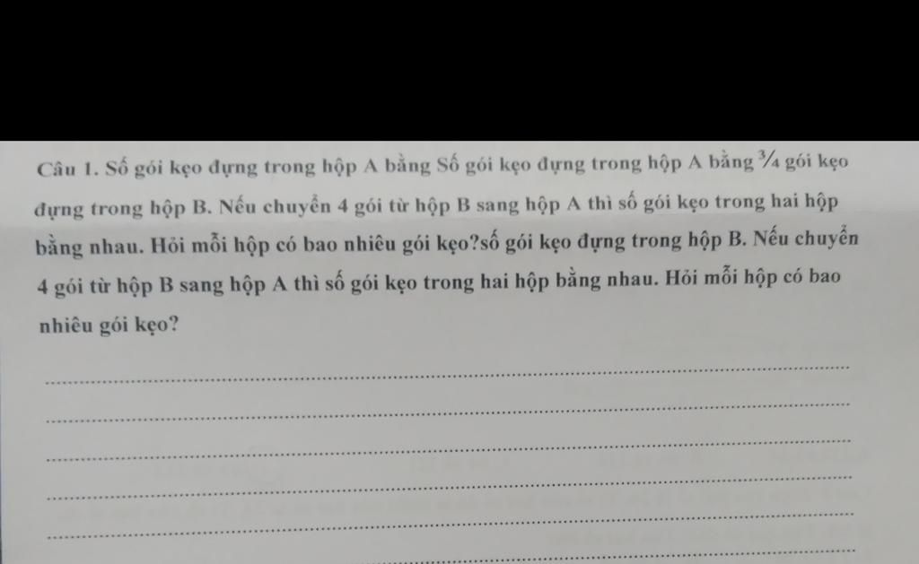 Hộp `B` hơn hộp `A` số gói kẹo là: