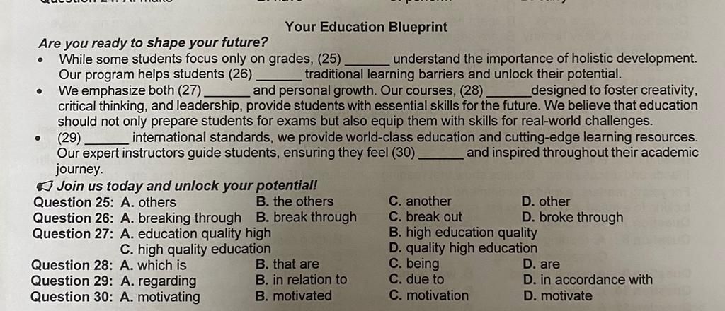 Dịch: Chương trình của chúng tôi giúp sinh viên vượt qua các rào cản học tập truyền thống và khai phá tiềm năng của họ.