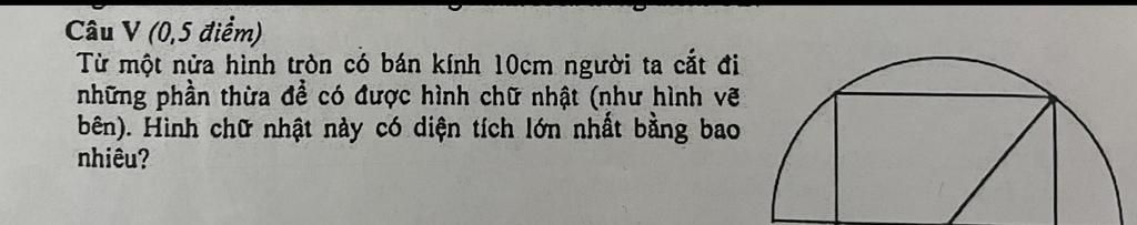 Vậy diện tích hình chữ nhật đó lớn nhất bằng `100 cm^2`