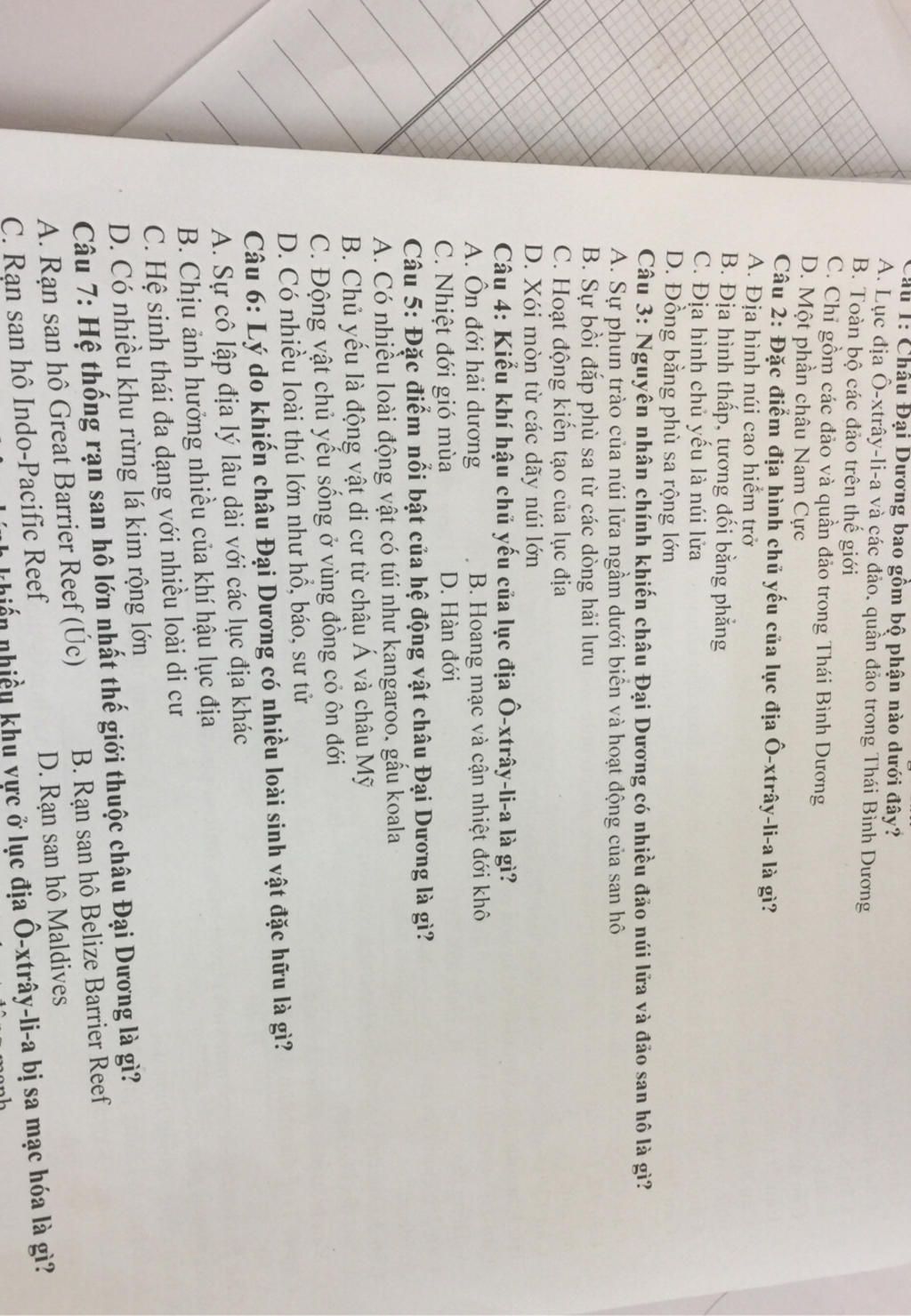 + Các đảo và quần đảo của châu Đại Dương được hình thành được hình thành từ hoạt động phun trào núi lửa và là các đảo san hô do san hô phát triển.
