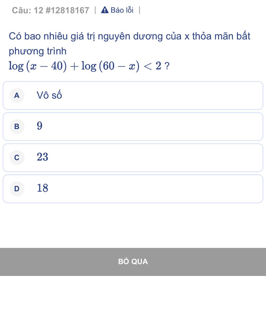 `->` Có `18` giá trị `x` nguyên thoả mãn