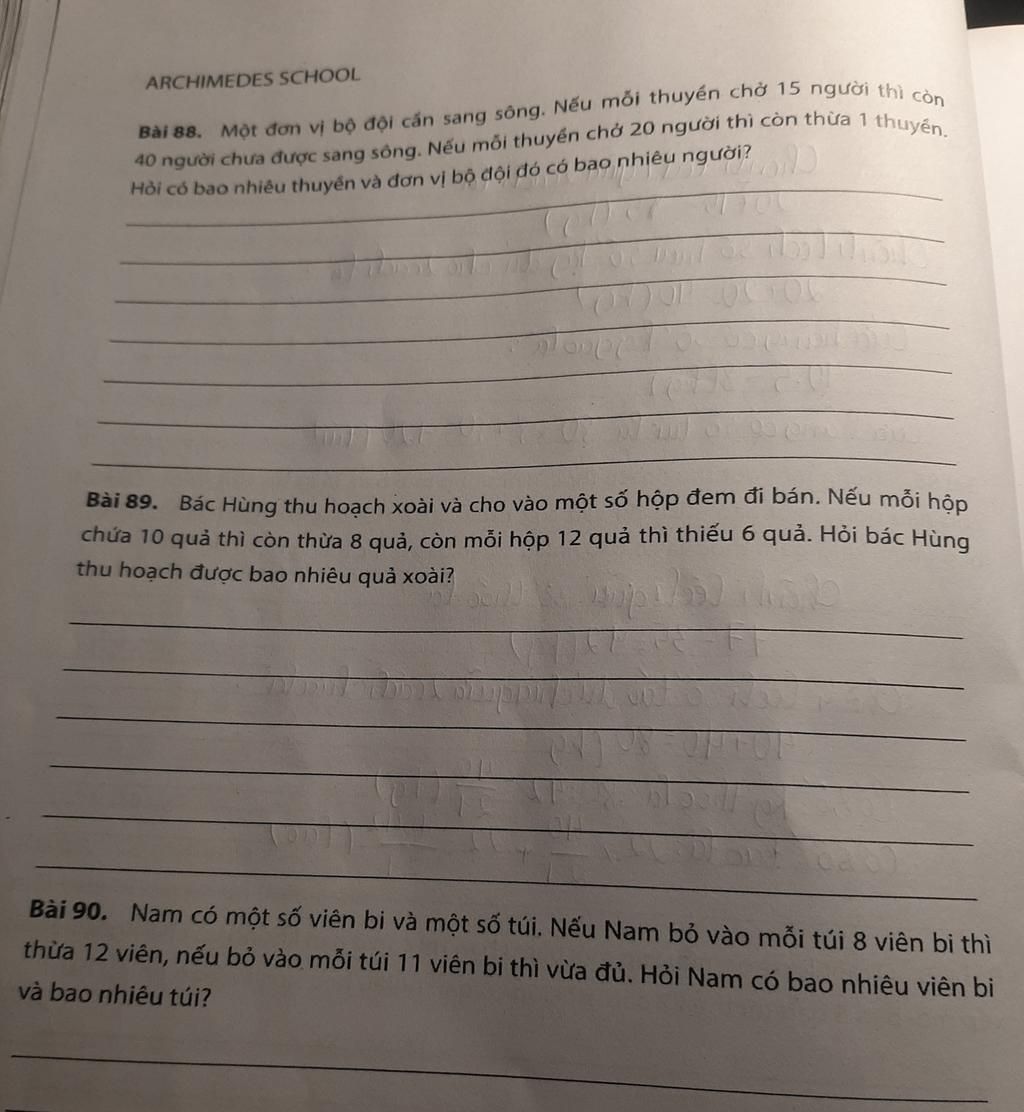 Đáp án: Nam có 44 viên bi và 4 túiBài 88: