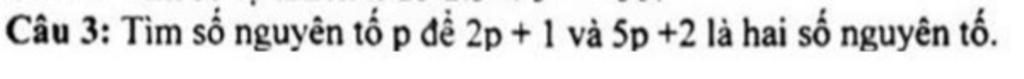 - p=3k+2p=3k+2: 5p+2=5(3p+2)+2=+12⋮35p+2=5(3k+2)+2=15k+12⋮3mà 5p+2>35p+2>3nên không là số nguên tố.