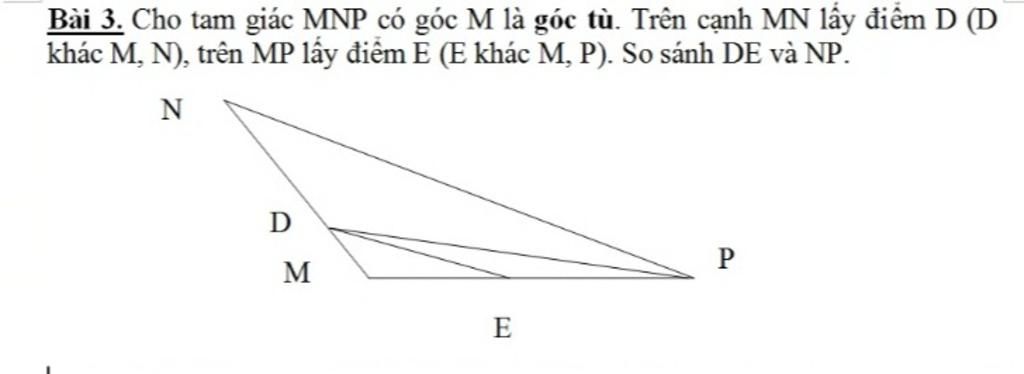`+`Do `ME<MP` nên `DE<DP`