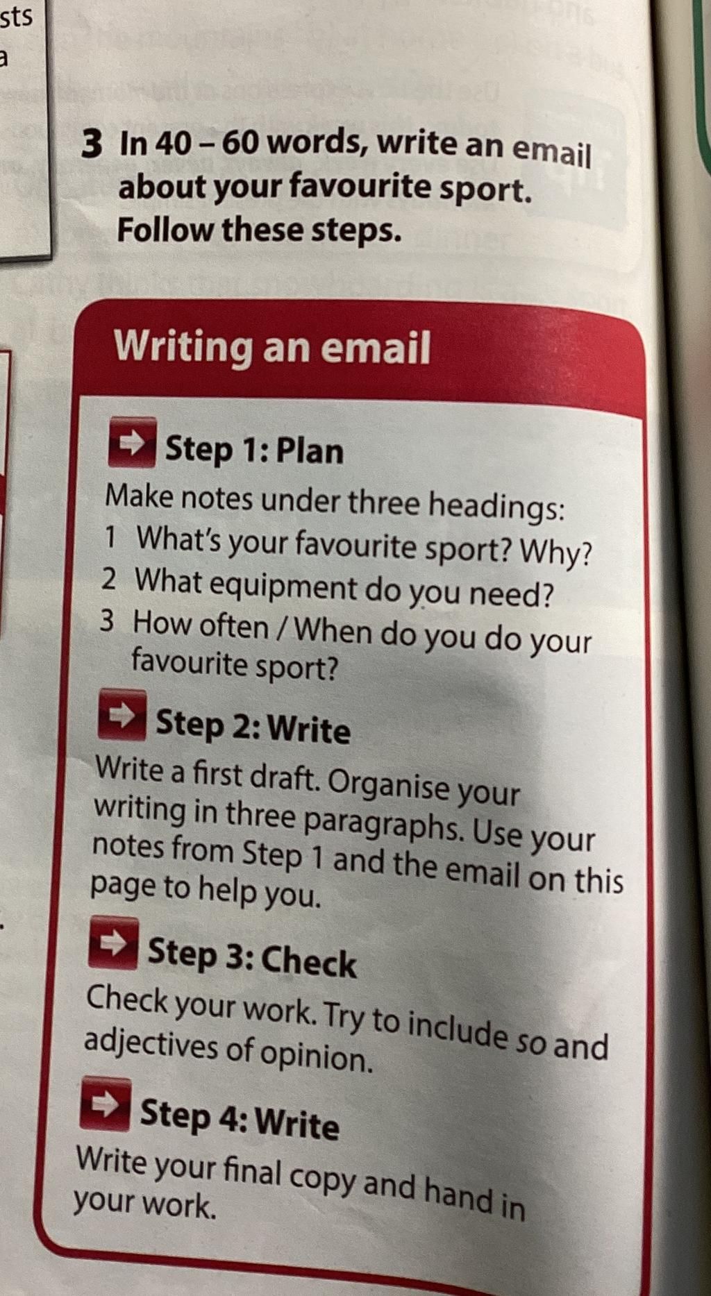 In 40-60 words, write an email about your favourite sports. Follow these steps