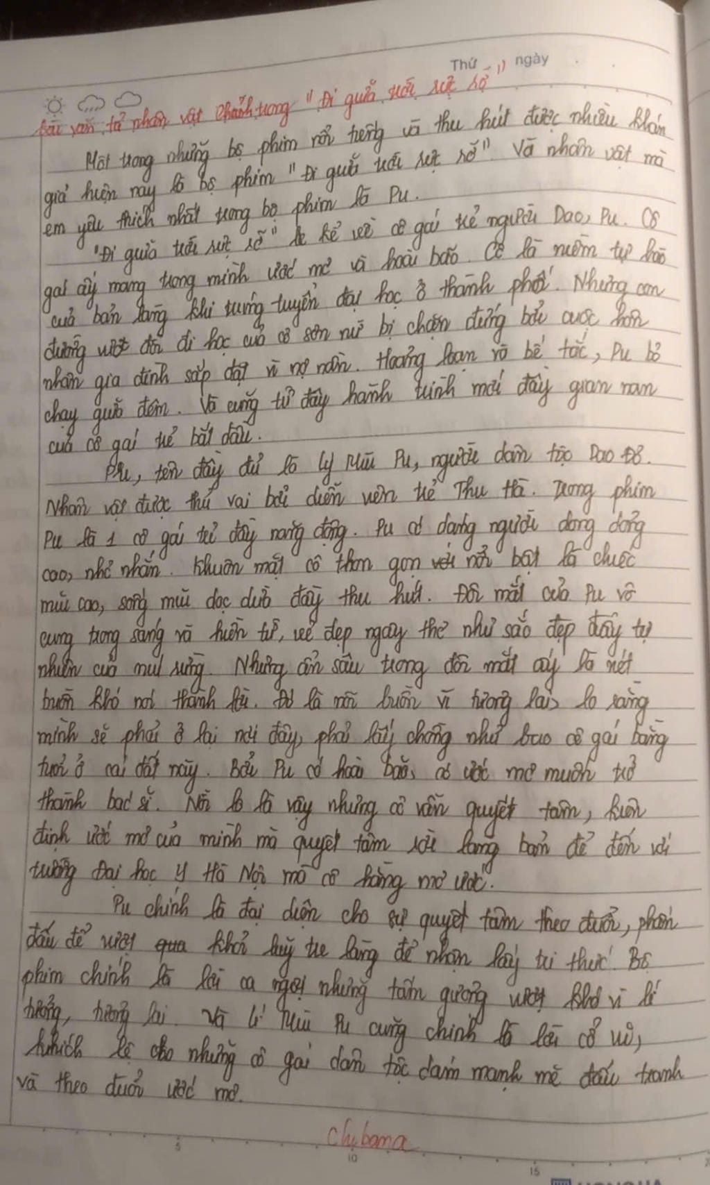 viết bài văn tả một người là nhân vật chính trong một bộ phim hoặc vở kịch mà em nhớ mãi