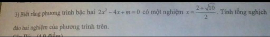 Vậy; `S = \frac{1}{x_1} + \frac{1}{x_2} = \frac{2}{\frac{-3}{2}} = \frac{2 \cdot 2}{-3} = \frac{-4}{3}`