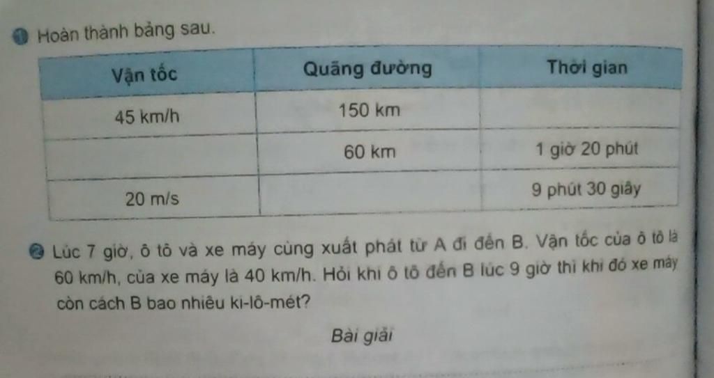 Khi ô tô đến B lúc $9$ giờ thì xe máy còn cách B quãng đường là: