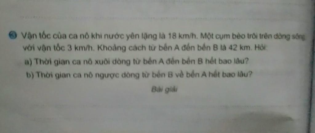 a) Vận tốc ca nô xuôi dòng từ bến `A` đến bến `B` là: