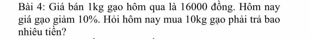`16000 xx ( 100%-10% ) = 14400` đồng