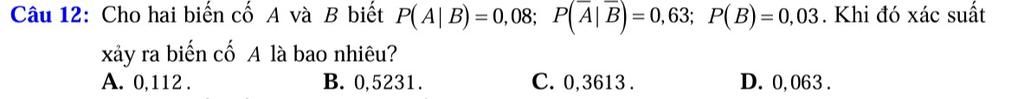 => P ( A ∩ B) = 0,63 x 0,97 = 0,6111
