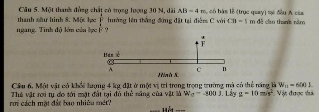 Điều kiện cân bằng với trục quay là điểm `A:`