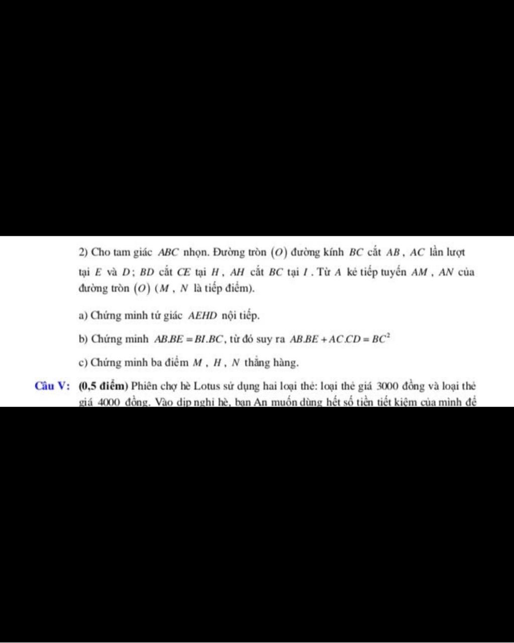 $\to \widehat{AMH}=\widehat{AIM}=\widehat{ANM}=\widehat{AMN}$ vì $AM=AN$ và $AMINO$ nội tiếp