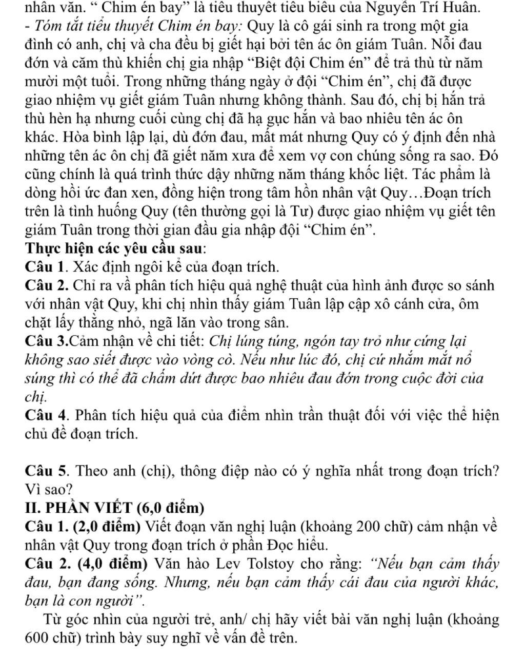 Quy là cô gái trẻ tuổi, sinh ra trong một gia đình bị tàn sát bởi tên ác ôn giám Tuân. Nỗi đau mất mát gia đình đã thôi thúc sự trả thù trong chị. Với mục tiêu trả thù cho gia đình Quy đã tham gia vào" Biệt đội chim én" với mong muốn giết được kẻ thù và trả thù cho gia đình. Sau Thuy nhiều lần được giao nhiệm vụ giết kẻ thù nhưng chị đã ko hoàn thành và sau nhiều lần thất bại chị đã giết đc kẻ thù để trả thù cho gia đình nhưng ko chỉ giết kẻ thù chị đã giết thêm rất nhiều người khác. Hòa bình lập lại, dù đớn đau, mất mát, nhưng Quy có ý định đến nhà những tên ác ôn chị đã giết năm xưa để xem vợ con chúng sống ra sao, điều này thể hiện Quy là một người sống có tình cảm nhưng do hoàn cảnh và mối thù về gia đình nên Quy đã bị thay đổi về tính cách. Đó cũng chính là quá trình thức dậy những năm tháng khốc liệt của Quy. Tác phẩm là dòng hồi ức đan xen, đồng hiện trong tâm hồn nhân vật Quy. Trong đoạn trích, Quy chuẩn bị thực hiện nhiệm vụ quan trọng: tiêu diệt giám Tuân. Chị cảm nhận rõ ràng nỗi căm uất và quyết tâm trả thù cho gia đình. Tuy nhiên, khi đối mặt với giám Tuân, chị sững sờ khi thấy hắn đang bồng đứa con út kháu khỉnh. Khoảnh khắc này khiến Quy phải đối mặt với sự mâu thuẫn nội tâm giữa nhiệm vụ và tình cảm con người. Nhân vật Quy được xây dựng với chiều sâu tâm lý phức tạp, thể hiện sự đấu tranh giữa lý trí và tình cảm. Chị không chỉ là một chiến sĩ cách mạng dũng cảm mà còn là con người với những cảm xúc và suy nghĩ sâu sắc. Quy không chỉ chiến đấu với kẻ thù mà còn với chính mình, với những ký ức đau thương và những giá trị nhân văn. Đoạn trích khắc họa rõ nét quá trình trưởng thành và sự thức tỉnh của Quy, từ một cô gái trẻ đầy căm thù đến một con người biết trân trọng giá trị của tình thương và sự tha thứ. Quy trong đoạn trích thể hiện sự phức tạp và sâu sắc của con người trong hoàn cảnh chiến tranh, đồng thời phản ánh quá trình đấu tranh nội tâm và sự trưởng thành của một cá nhân trong xã hội.