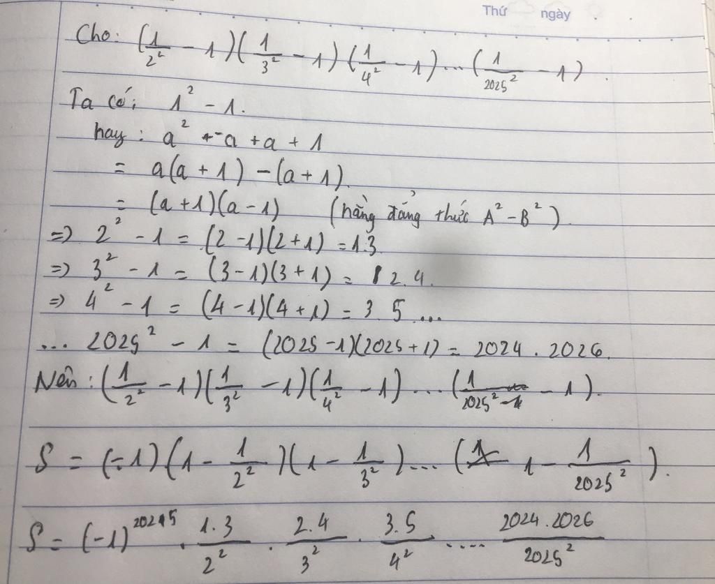`=>(1/2^2-1)*(1/3^2-1)*.....*(1/2025^2-1)`