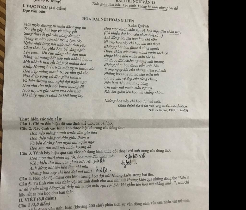Trong bài thơ Hoa dại núi Hoàng Liên, Xuân Quỳnh đã khắc họa hành trình cảm xúc của nhân vật trữ tình theo một mạch vận động rõ rệt, từ niềm vui bất ngờ khi bắt gặp những bông hoa dại giữa núi rừng đến nỗi xót xa, thương cảm trước thân phận lặng lẽ, vô danh của chúng. Mở đầu tác phẩm, người đọc cảm nhận được sự “vui mừng bắt gặp một nhành hoa” của nhân vật trữ tình – niềm hân hoan ấy gắn liền với việc khám phá vẻ đẹp muôn hình vạn trạng của những loài hoa nở dọc đường lên núi Hoàng Liên. Các loài hoa được liệt kê một cách chân thật: hoa nếp, hoa diếp, hoa nghệ, hoa sim, hoa lay ơn… dẫu chỉ là hoa dại nhưng vẫn mang đến cho người quan sát cảm giác mới mẻ, háo hức, như tìm thấy một kho báu nhỏ giữa thiên nhiên hùng vĩ. Tuy nhiên, niềm vui ấy không dừng lại ở sự ngắm nhìn đơn thuần; nó nhanh chóng chuyển sang nỗi trăn trở khi nhân vật trữ tình nhận ra: “Anh đừng hỏi tên hoa làm chi nữa / Những hoa này chỉ hoa dại mà thôi!”. Ở đây, cảm xúc của nhân vật bắt đầu có sự dao động: từ say mê trước vẻ đẹp của hoa, tác giả chợt nghĩ về thân phận “hoa dại” – những bông hoa không được chăm sóc, không được ngợi ca, thậm chí đôi khi còn bị “giẫm lên” mà chẳng ai nhớ. Chính sự đối lập giữa “hoa được ở cùng người” – được nâng niu, khoe sắc trong vườn – với những bông hoa dại “mọc cho triền núi” đã khơi dậy trong lòng nhân vật nỗi xót xa. Cảm xúc ấy càng sâu sắc hơn khi nhân vật trữ tình ý thức được sự quên lãng, thờ ơ của con người đối với vẻ đẹp thiên nhiên vốn rất giản dị nhưng giàu sức sống. Nỗi niềm này thể hiện một cách trực tiếp trong những câu thơ cuối: “Đôi khi giẫm lên hoa mà chẳng nhớ...”, vừa là lời trách nhẹ, vừa là lời nhắc nhở về sự vô tình, vô tâm của con người trước những điều nhỏ bé nhưng quý giá. Khép lại bài thơ, điệp khúc “Những hoa này chỉ hoa dại mà thôi” vang lên như một tiếng thở dài, đồng thời bộc lộ niềm cảm thương sâu lắng của nhân vật trữ tình. Sự vận động của cảm xúc – từ vui sướng, thích thú đến trăn trở, tiếc nuối – không chỉ làm nổi bật vẻ đẹp mong manh, lặng lẽ của loài hoa dại, mà còn cho thấy tấm lòng nhạy cảm, nhân ái của Xuân Quỳnh. Chính sự trân trọng dành cho những giá trị bé nhỏ, bị lãng quên đã tạo nên chiều sâu nhân văn cho bài thơ, đồng thời gợi nhắc mỗi người hãy biết nâng niu và gìn giữ vẻ đẹp giản dị trong cuộc sống.
